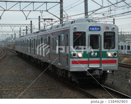 東京地鐵 13,000 系列列車正在東武日光線上運行(在杉戶高之台站拍攝)。