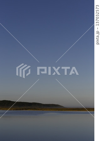 夕陽將草原和山脈染成一片色彩繽紛的景象。