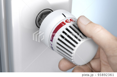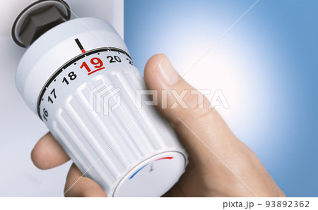 Man reducing energy consumption by setting thermostat temperature to 19 degrees.