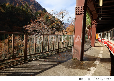 宇奈月溫泉,秋葉盛開的季節,黑薙站電車站台