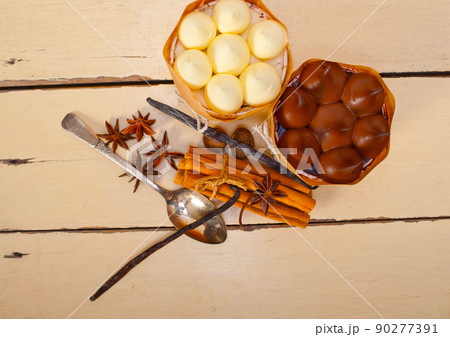 cream roll cake dessert and spices