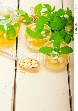Arab traditional mint and pine nuts tea