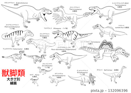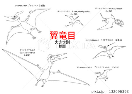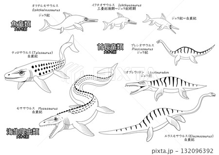 一組古代海洋爬行動物和魚龍(包括滄龍)的線條圖