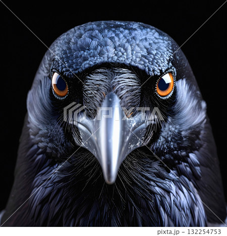 Dark raccoon portrait with glowing eyes and sharp fur contrast