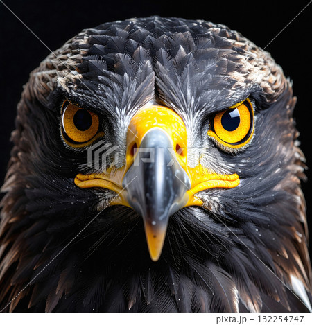 Dramatic black chimpanzee portrait with glowing amber eyes