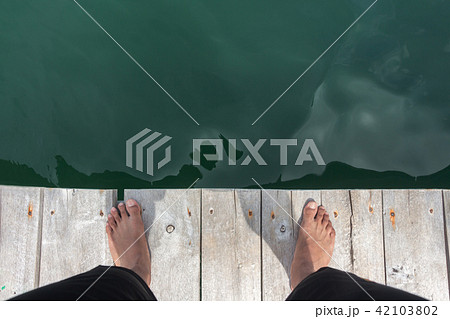 Feet on the wooden bridge