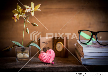 still life with heart and glasses and books