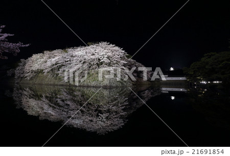 Hikone城堡外面護城河和櫻花在晚上