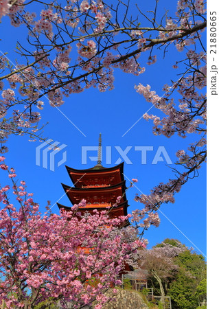 宮島的五層寶塔和櫻花