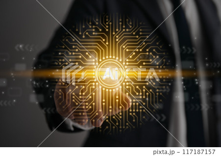 Businessman Touch Screen and AI Artificial Intelligence Icon