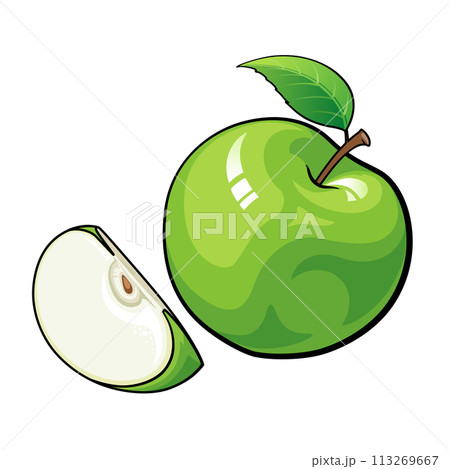 Green apple, fruit cartoon, Apple with leaf isolate on white background.