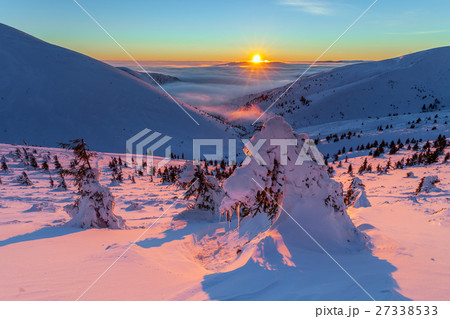 Majestic sunset in the mountains landscape. Carpathian, Ukraine