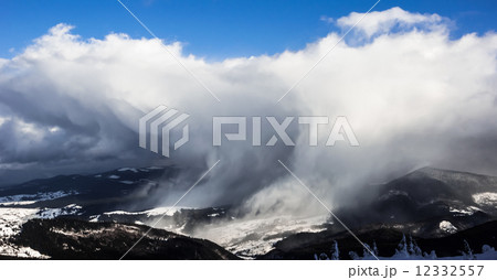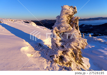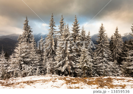 beautiful mountains in winter. Rural pezazh. Trees covered with snow. Happy New Year