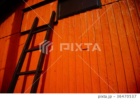 橙色牆壁和梯子