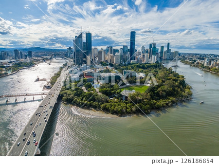 Aerial view of skyscrapers in Brisbane CBD in Australia