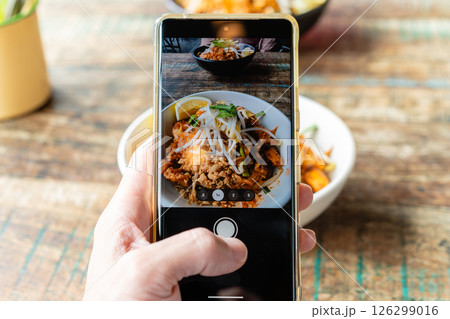 POV shot of taking photo of a meal using the camera app of a smartphone