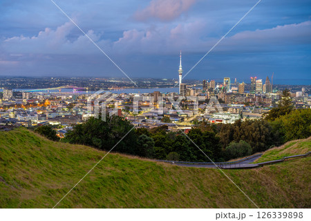 Aerial view of Lion Rock Hill in Hong Kong at sunset