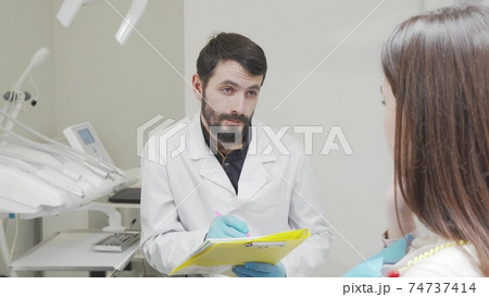 Cropped shot of a professional dentist showing teeth mold to his patient