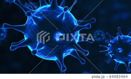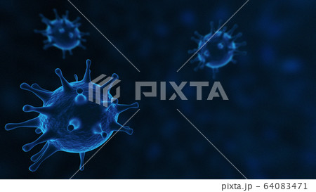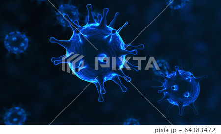 Viruses, Virus Cells under microscope, floating in fluid with blue background. Pathogens outbreak of bacterium and virus, disease causing microorganisms. COVID-19 Coronavirus.