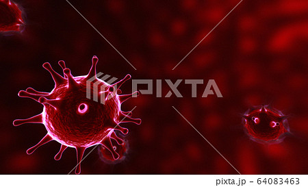 Viruses, Virus Cells under microscope, floating in fluid with red background. Pathogens outbreak of bacterium and virus, disease causing microorganisms. COVID-19 Coronavirus
