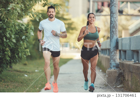 Happy couple cuddling on their bed at home. Romantic young LGBTQ