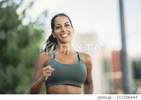 Portrait of teenage girl in casual t-shirt outside on summer season