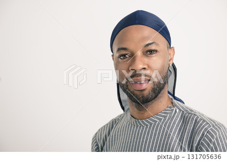 Portrait of teenage girl in casual t-shirt on light background in studio.