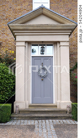 Elegant wooden grey doors with hanging wreath