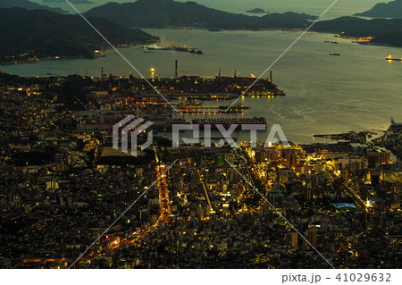 從Ashigamine,吳市,廣島縣的晚上視圖