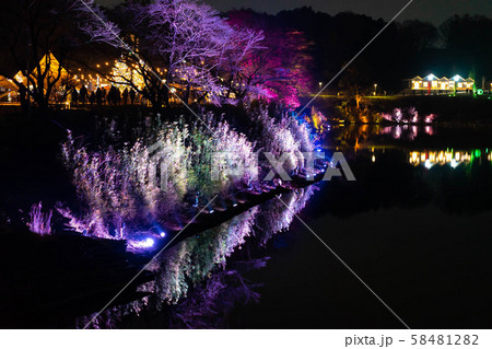 櫻花在夜間和軌跡