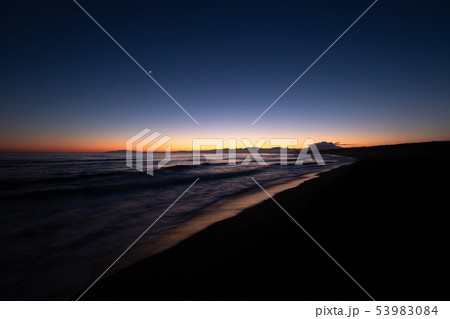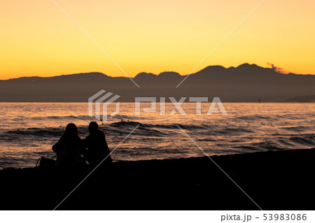 從海上看到的富士山的輪廓,神奈川縣茅崎市