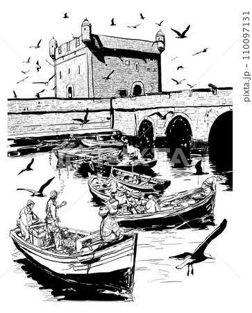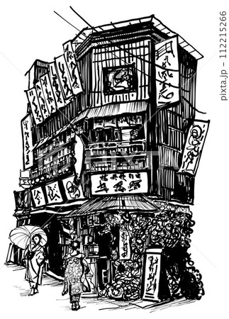 Original illustration of a Japanese samurai fighting with sword and helmet in the style of chinese ink painting
