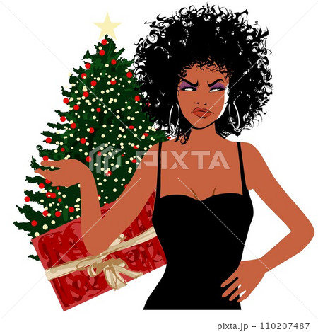 Young woman with afro hairstyle furious over unwanted Christmas gift - Vector Illustration