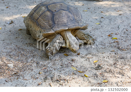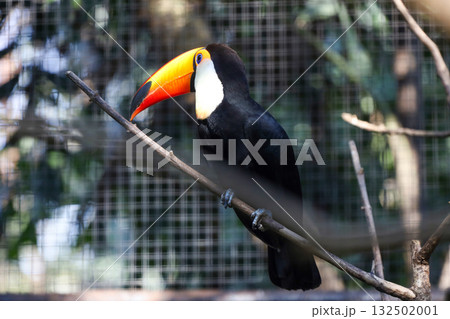The Painted Stork bird (Mycteria leucocephala) in garden
