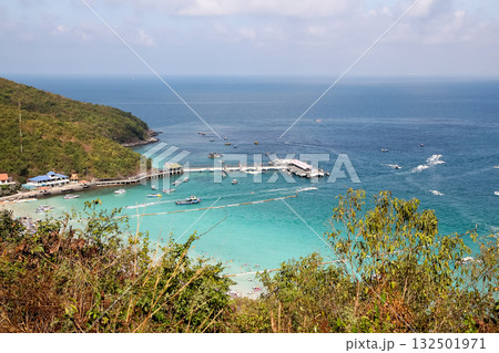 Koh Lan,thailand-February 9,2014:tourist visit and speed boat stop on the beach at koh lan ,because the beach most beautiful.