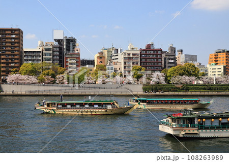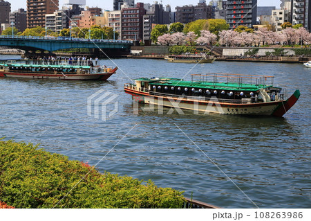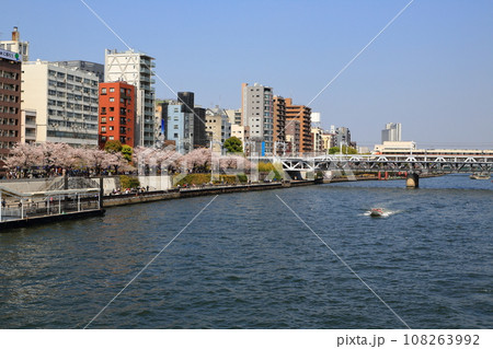 有觀光船碼頭的吾妻橋和隅田川的風景