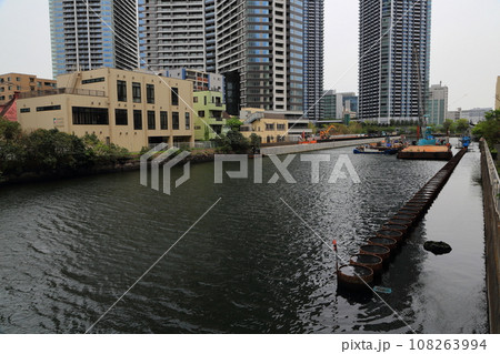重建中的築地市場舊址和對岸的勝哄摩天大樓