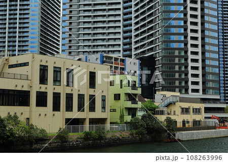 隅田川沿岸的大型住宅區和藍天上的雲朵