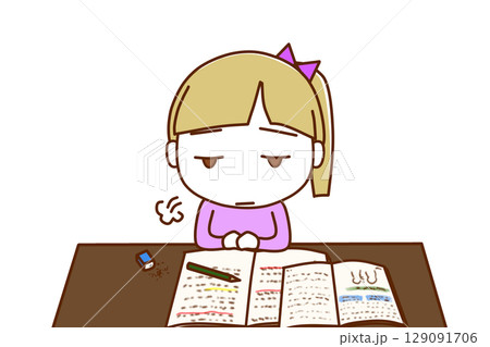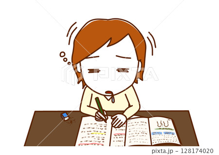 (上半身正面照)眼睛冒出火焰、努力學習的女孩