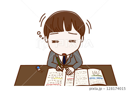 (上半身正面照)失去學習動力、嘆氣做白日夢的男學生