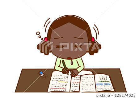 (上半身正面照)一位非裔美國女孩,眼睛裡冒著火焰,努力學習