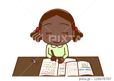 (前上半身)一個白人女孩微笑著努力學習