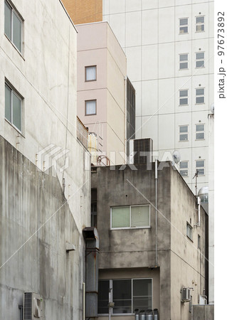 一排排的複式樓背後,城市中的老建築,市中心一字排開的複式樓,空置房間的樓房