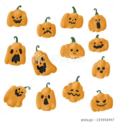 Set of Hand drawn pumpkin doodle icon, for Halloween
