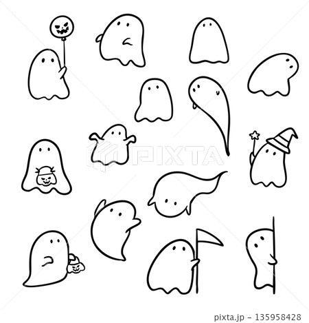 Set of Cute ghost doodle hand drawing, Vector for Halloween