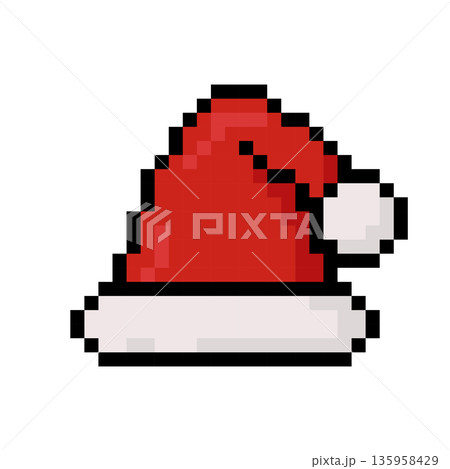 Santa hat for Christmas, icon in 8 bit style
