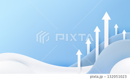 business growth and leadership concept with white arrows rising upward in paper cut style blue background symbolizing success, progress, direction, and teamwork in corporate innovation