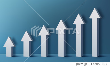 growth success progress business finance chart with 3d white arrows rising upward on dark teal background symbolizing corporate achievement improvement and economic development