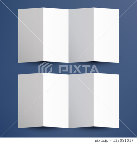 brochure mockup with two white 4 folded brochures on blue background, clean minimal design template for branding, marketing, and print presentation