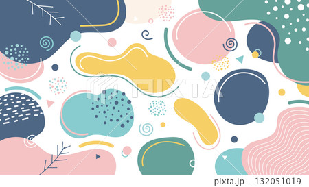 abstract colorful background pattern with pastel geometric and organic shapes in pink yellow blue and teal scattered on white for modern design texture art wallpaper and creative projects
